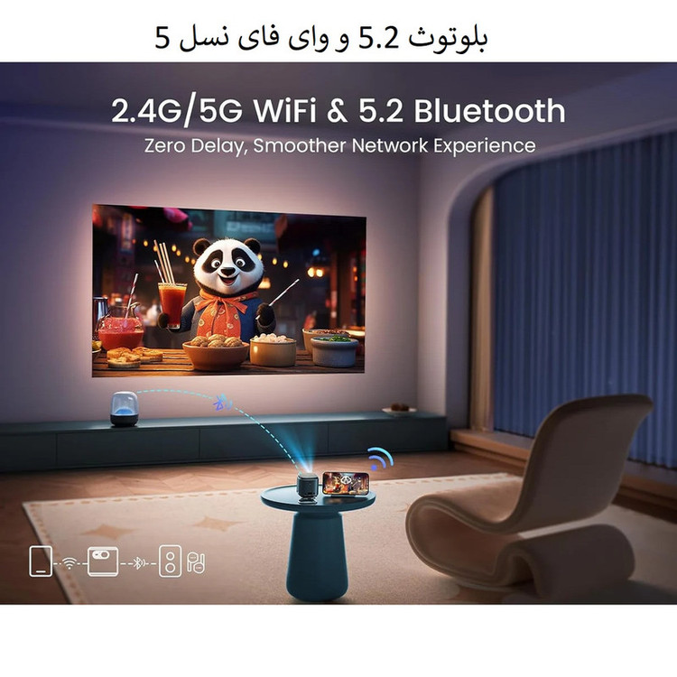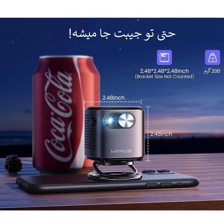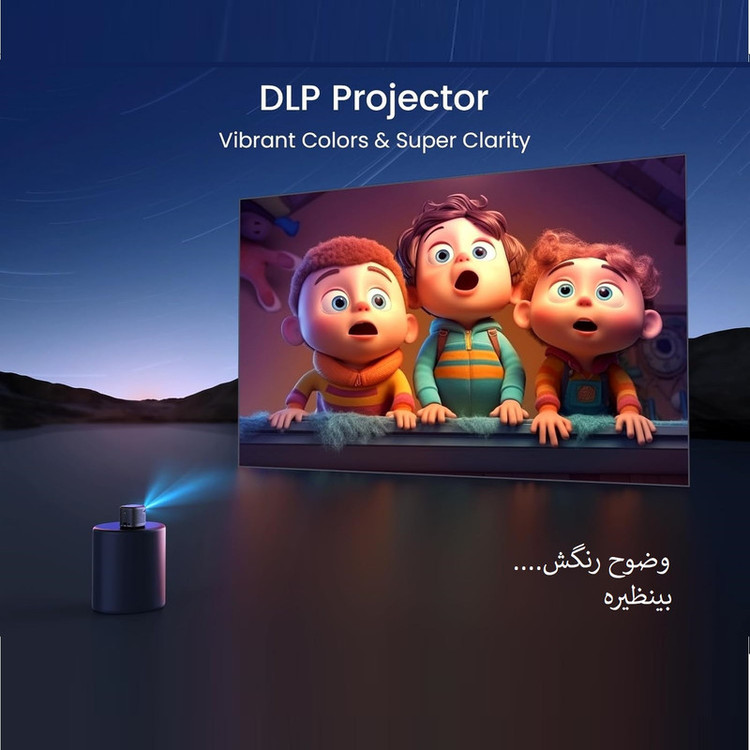 مینی ویدیو پروژکتور ویمیوس مدل Q2 یک پروژکتور شارژی، کوچک، پرتابل با تصویر فوق العاده است. این پروژکتور از فناوری وای فای نسل 5، بلوتوث نسخه 5.2 و 2 عدد باتری شارژی داخلی برخوردار است که بالاترین و بهترین تجربه استفاده از یک پروژکتور را به شما می دهد. این پروژکتور دارای ریموت کنترل بوده و قابلیت اتصال با وای فای، بلوتوث و کابل HDMI را هم دارد. پروژکتور Wimius Q2 قابل حمل است و می توانید آن را هرجایی، چه در منزل، محل کار، طبیعت و ... حمل و استفاده کنید. پروژکتور Q2 دارای سیستم عامل اندروید 11 است که قابلیت نصب اپلیکیشن هم دارد و با تاچ پدی که روی بدنه پروژکتور تعبیه شده، می توانید تجربه جذابی از کار با آن را کسب کنید. این پروژکتور از نوع DLP (پردازش دیجیتال نور) است که دیدن فیلم و تصاویر را بسیار مطلوب تر کرده و نسبت به پروژکتورهای LCD یک سر و گردن بالاتر است. تنها کافیست یک صفحه سفید معمولی همراه داشته باشید. این پروژکتور را می توانید به کره ماه هم ببرید و از فیلم دیدن با آن لذت ببرید. باتری آن هم حداکثر 2.5 ساعت دوام می آورد که برای دیدن یک فیلم سینمایی بسیار مطلوب است. اگر هم شارژ آن رو به اتمام بود می توانید با کابلی که درون بسته بندی محصول وجود دارد، آن را به یک پاوربانک وصل کنید تا به خوبی شارژ شود. از نکات مثبت و مهم این پروژکتور این است که دارای لامپ تصویر با عمر 50000 ساعت است. پروژکتور ویمیوس Q2 دارای اصلاح خودکار کیستون و زاویه تصویر است که به صورت خودکار زاویه و حالت تصویر روی پرده را تنظیم می کند تا به بهترین شکل فیلم خود را تماشا کنید. همانطور که بالاتر هم گفتیم، وای فای پیشرفته نسل 5 و بلوتوث نسخه 5.2 آن باعث شده تا این پروژکتور به اکثر موبایل ها و لپ تاپ ها وصل شود و بتوانید تصویر لپ تاپ و موبایل خود را روی پروژکتور بیاندازید و از شر کابل هم خلاص شوید. ویژگی مهم دیگر این پروژکتور، برخورداری از یک پایه قابل تنظیم و قابل چرخش است و به کمک آن می توانید پروژکتور را در هر زاویه ای که دوست داشتید تنظیم کنید. این پروژکتور دارای فن قوی و بی صداست که گرما را به خوبی از پروژکتور خارج می کند. همچنین دارای فناوری جلوگیری از گرمای بیش از حد است تا در صورت گرم شدن بیش از حد یا قرار گرفتن در معرض گرما، از آسیب به پروژکتور پیشگیری کند.