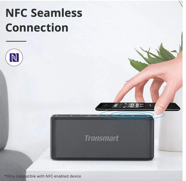 اسپیکر مگا پرو ترونسمارت علاوه بر بلوتوث، از طریق NFC هم میتواند به سایر دستگاههای از قبیل لپ تاپ و تبلت متصل شود. تنها کافی است دکمه NFC را بزنید و گوشی همراه خود را نزدیک اسپیکر بیاورید تا به صورت خودکار به هم متصل شوند.