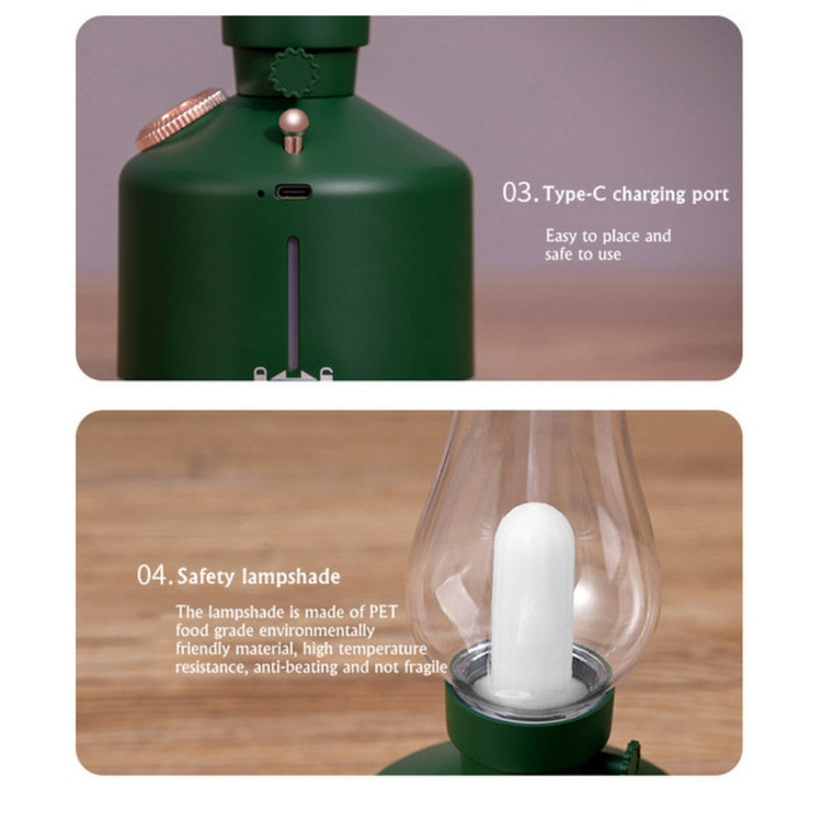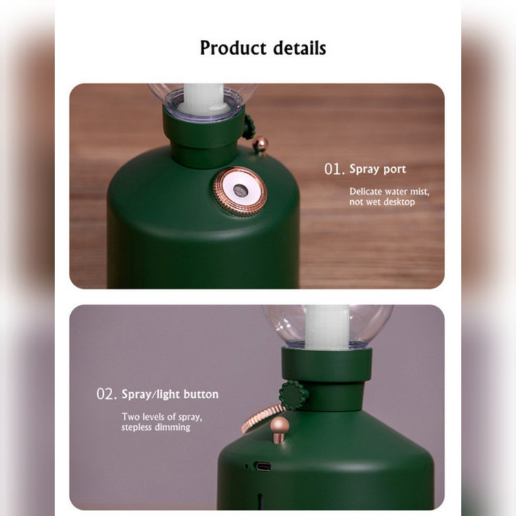 دستگاه بخور سرد و رطوبت ساز خانگی با طرح قدیمی خود نوعی چراغ خواب فانتزی نیز به حساب می آبد. این دستگاه دارای باتری قدرتمند 1200 میلی آمپری است و با توان مصرفی 1.5 واتی، امکان استفاده طولانی مدت را به ما می دهد. مخزن آب دستگاه بخور و رطوبت ساز با ظرفیت 280 میلی لیتری، توانایی اسپری 25 تا 40 میلی لیتر ساعت دارد. میزان روشنایی چراغ فانتزی و بخورساز بصورت دستی و نوع اسپری بخور سرد نیز به دو حالت مختلف قابل تنظیم است. ابعاد (9.5×9.5×22.5) سانتی متری و وزن سبک 200 گرمی از دیگر ویژگی های این رطوبت ساز و بخور سرد است که قابلیت استفاده در منزل و اتاق خواب را به ما می دهد.