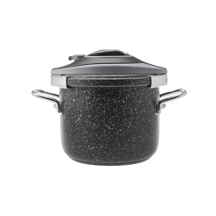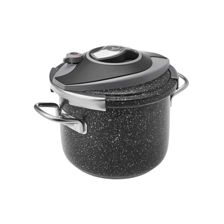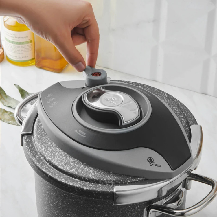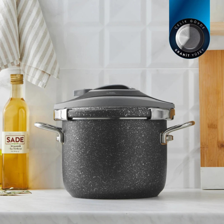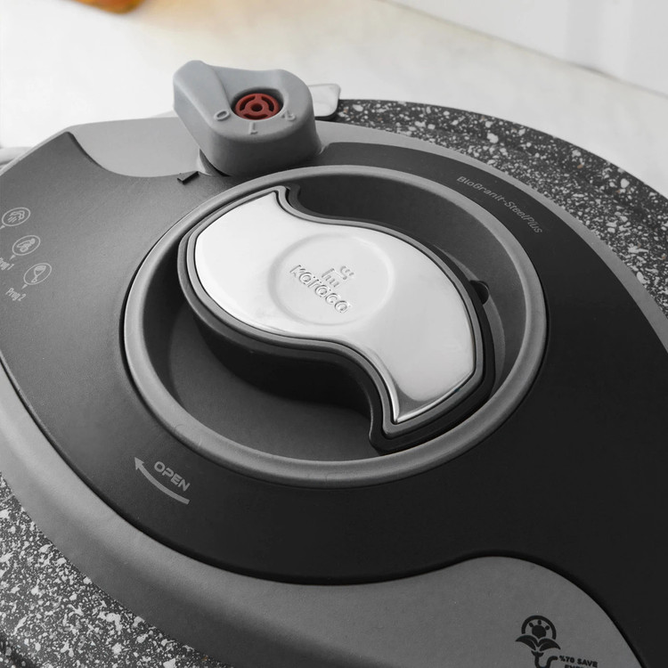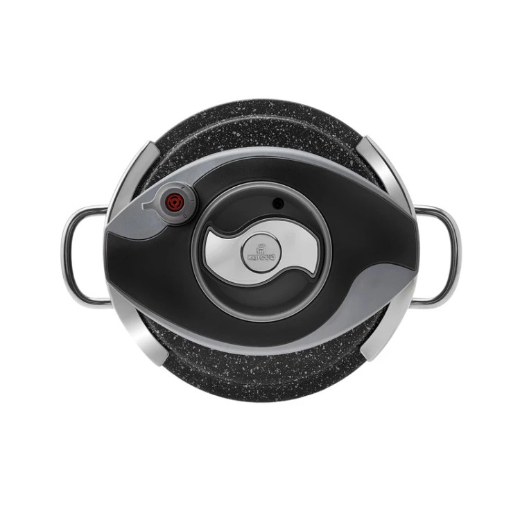 زودپز و بخارپز کاراجا ساخت کشور ترکیه می باشد. برند کاراجا از مشهورترین و با کیفیت ترین برندهای شناخته شده در سراسر جهان می باشد. و همانطور که میدانید امنیت کار با دستگاه زودپز مساله بسیار مهمی است که در تمام دنیا مصرفکنندگان به عنوان یک پارامتر مهم درنظر میگیرند ، که با انتخاب این محصول استاندارد در رده جهانی می توانید با خیال آسوده به آشپزی و پخت و پز در آشپزخانه بپردازید . همچنین بر روی درب این محصول سوپاپ سه حالته فشار پخت تعبیه شده است. این محصول داری سیستم باز و بسته کردن درب ارگونومیکی می باشد که باز و بسته کردن درب را بسیار ساده و راحت انجام می شود. قسمت زیرین این زودپز به صورتی طراحی و تولید شده که حرارت را بصورت مساوی به غذای در حال پخت انتقال می دهد. استفاده از این محصول خیلی راحت و آسان بوده و طوری که با یک دکمه کلیس کلیپسی روی آن با چرخاندن به مخالف عقربه های ساعت دوتا دستگیره های درب آن باز شده و با فشار دادن دکمه به رنگ استیل آن خیلی راحت بسته می شود .