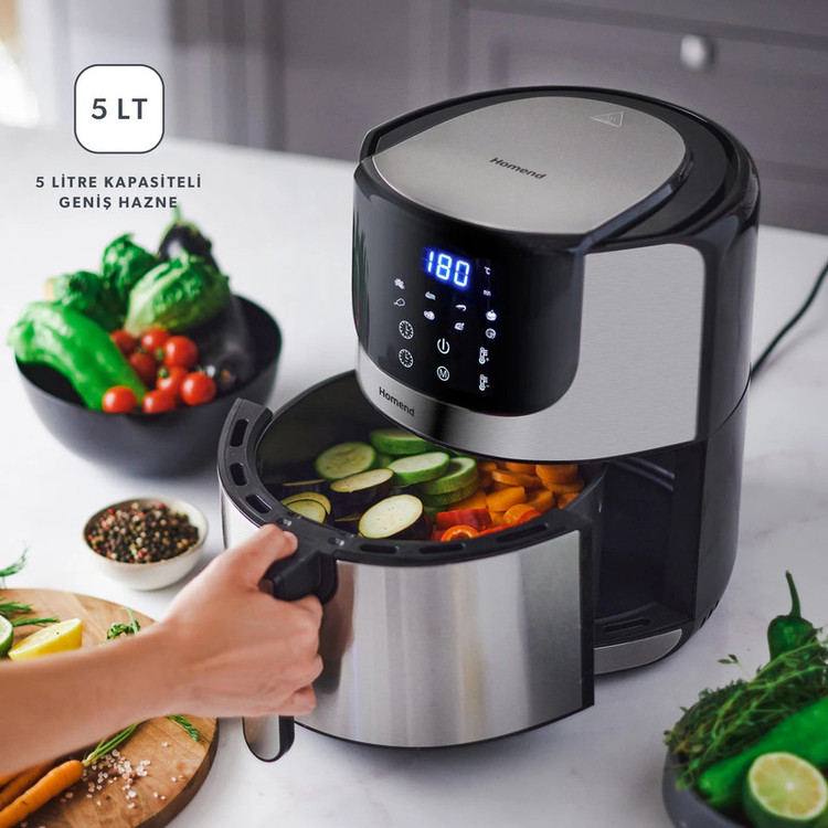 با 8 برنامه آماده،سیب زمینی، گوشت، مرغ، استیک، کیک، پیتزا، میگو و ماهی، تنها با یک لمس، دستور پخت های خوشمزه ای را آماده می کند. از آنجایی که با هوای گرم کار می کند، 85 درصد روغن کمتری نسبت به روش های سرخ کردنی سنتی مصرف می کند. با فناوری حرارت سریع 360 درجه، می توانید غذای خود را بدون روغن کشیدن، ترد و کامل کنید. با صفحه نمایش دیجیتالی شیک خود، استفاده عملی و همچنین فرصتی برای پیگیری تنظیمات برنامه نویسی و تایمر به شما ارائه می دهد شما می توانید با تنظیم آن بین 80 تا 200 درجه سانتی گراد، مناسب ترین دما را برای دستور پخت خود انتخاب کنید به لطف ویژگی تایمر قابل تنظیم تا 30 دقیقه، دستور العمل های شما دقیقاً همانطور که می خواهید پخته می شوند