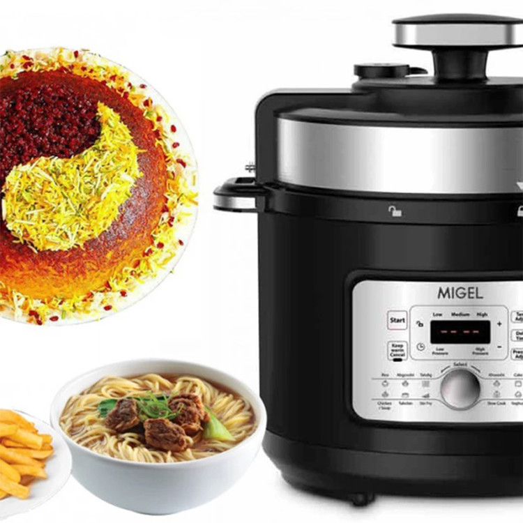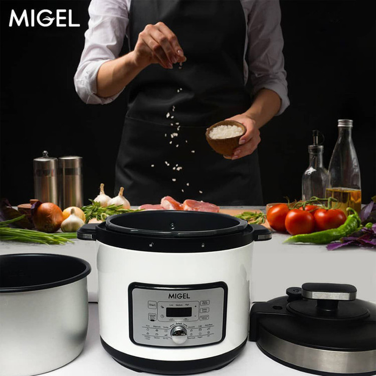 اگر قصد تهیه زودپز یا به نوعی مولتی کوکر دارید، زودپز میگل مدل GPC 106 یکی از گزینههایتان است. این مدل به صورتی طراحیشده تا فضای زیادی را اشغال نکند. درعینحال این مدل کارایی بسیاری دارد. برای این پلوپز 12 برنامه پخت پیشفرض تعبیهشده است. برای افرادی که تبحر زیادی درآشپزی ندارند این مدل انتخاب مناسبی است. با استفاده از برنامههای پیشفرض میتوانید غذای مورد نظرتان را تهیه کنید. ظرفیتی که برای این محصول در نظر گرفته شده 6 لیتر است. این میزان برای استفاده خانگی برای خانوادههای کوچک و متوسط مناسب است. دیگ استفاده شده برای این زودپز پ.شش نچسب دارد. این محصول به شما قابلیت پخت برنج، آبگوشت، ته دیگ، خورشت، کیک، سوپ، گوشت، حبوبات، ته چین و غیره را میدهد. برای انجام تنظیمات و انتخاب برنامه میتوانید از پنل لمسی که برای این مدل تعبیهشده استفاده کنید. اگر قصد تهیه زودپز با کیفیت دارید، زودپز میگل مدل GPC 106 یکی از گزینههایتان است.