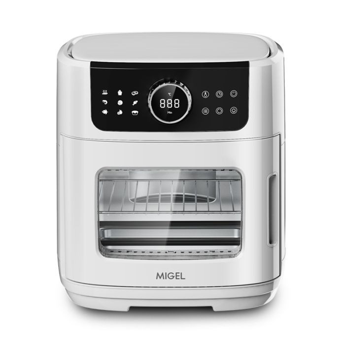 سرخ کن های کم روغن امروزه به یکی از وسایل ضروری برای آشپزخانه تبدیل شده است . زیرا به دلیل مصرف زیاد مواد سرخ کردنی و ضرر آن برای بدن بهتر است کم تر روغن مصرف نموده که این مشکل را سرخ کن های بدون روغن یا به عبارتی کم روغن حل نموده اند. سرخ کن کم روغن میگل مدل GAF 199 با داشتن ظرف 12 لیتری یکی از بزرگترین سرخ کن ها بدون روغن بازار به شمار رفته که توسط شرکت سنجه کیش وارد بازار ایران شده است. این دستگاه دارای یک دیگ نچسب با قابلیت جداسازی از بدنه اصلی بوده که می تواند به راحتی در ماشین ظرف شویی اقدام به نظافت و شستشو نمایید. توان مصرفی این دستگاه با 1900 وات قادر خواهد بوده حجم زیادی از مواد غذایی را به لطف تنظیم دما تا 200 درجه سانتی گراد سرخ و طبخ نماید. درب اصلی این دستکاه نیز دارای یک پنجره برای مشاهده سیر پخت مواد غذایی بوده که می توانید این درب را نیز از بدنه اصلی جدا کنید. سرخ کن کم روغن میگل(هواپز) مدل GAF 199 با 9 حالت پخت پیش فرض و صفحه نمایش لمسی و ظرفیت 12 لیتری گزینه ی مناسبی برای پخت سریع و آسان با فقط اسپری کردن مقدارکمی روغن می باشد.سرخ کن بدون روغن میگل با داشتن سینی چکه گیر روغن، سینی پخت پیتزا، توری گریل،سبد سرخ کن، پایه گردان گریل، سیخ جوجه گردان و دستکش یکی از کاملترین سرخ کن های برند میگل می باشد. قابلیت جوجه گردان که در کمتر سرخ کنی دیده می شود در این محصول به کار گرفته شده که وسیله یک سیخ جوجه گردان می توانید یک مرغ کامل را سرخ یا سوخاری نمایید.