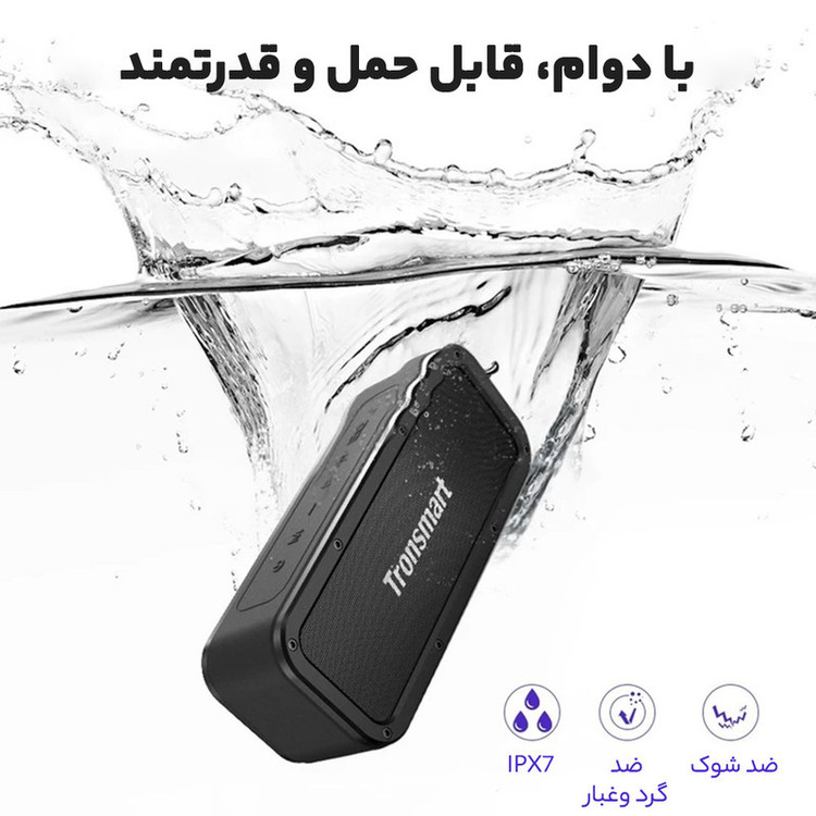 اسپیکر ترونسمارت مسافرتی Element Force یک اسپیکر ضدآب IPX7 و دارای باس عمیق با خروجی قدرتمند 40 وات و صدای استریو با جلوه های EQ سه باس است. این اسپیکر میتواند تا 30 دقیقه به طور کامل در آب غوطهور شود. به دلیل مسافرتی بودن آن در برابر ضربه و گرد و غبار مقاوم است. نکته قابل توجه با یک بار شارژ 15 ساعت قابل استفاده است. همچنین به سادگی تلفن هوشمند مجهز به NFC خود را به بلندگو میتوانید وصل کنید. میکروفون داخلی نیز به شما امکان میدهد تماسهای هندزفری داشته باشید. جک داخلی 3.5 میلیمتری aux-in جایگزینی برای دستگاههای صوتی بدون بلوتوث نیز فراهم میکند.