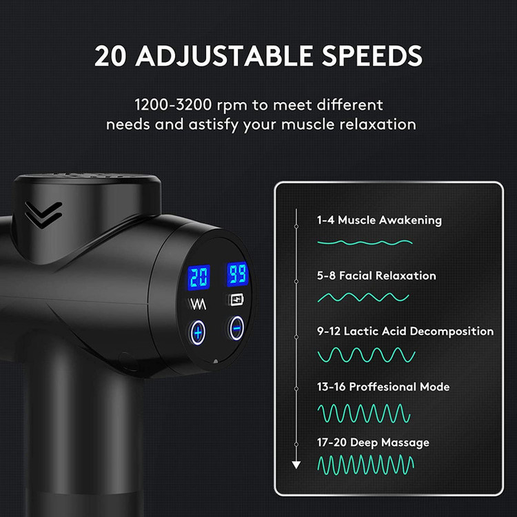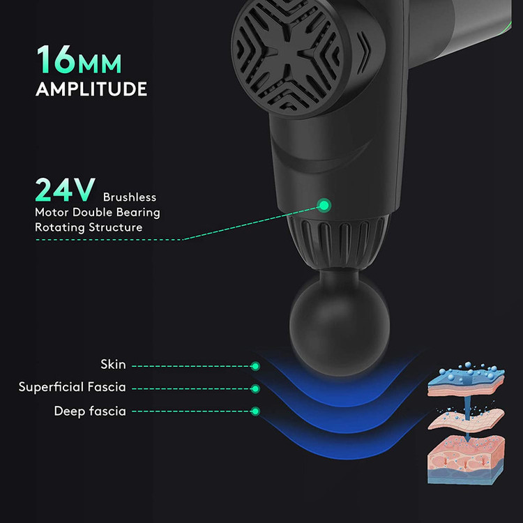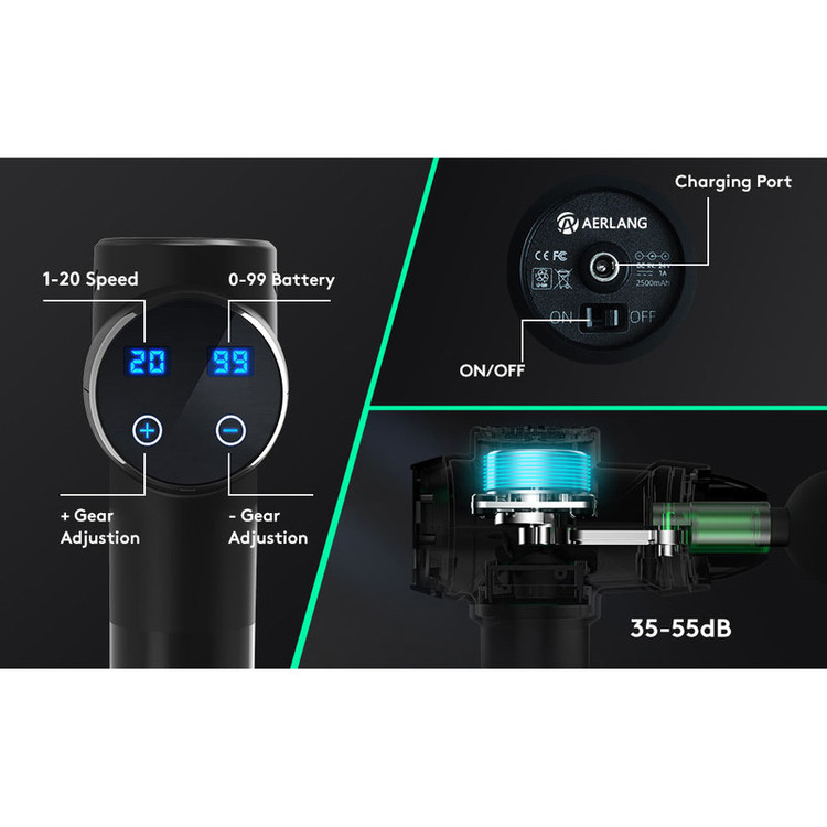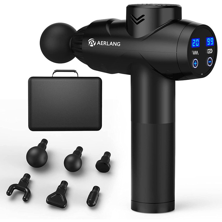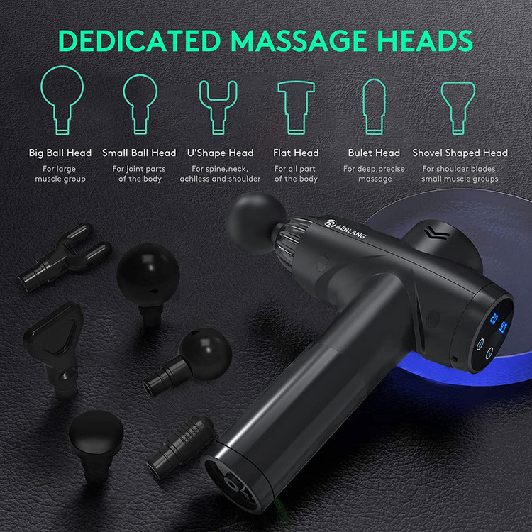 این ماساژور تفنگی از برند ٍَAERLANG بی سیم و سبک، دارای نمایشگر دیجیتال LED با کلید لمسی برای تنظیم سرعت میباشد، موتور این دستگاه نسبت به نسل های قبلی تقویت شده و قدرت بالایی دارد و با فشار زیاد به عضله هم استپ نمیشود. کاربرد این ماساژور برای رهایی از خستگی عضلانی بسیار موثر است و دارای 6 نوع سری مختلف میباشد که یک تجربه ماساژ آرامش بخش را بوجود می آورد و باعث کاهش دردو آسیب های استخوانی میگردد.به رفع درد و سفتی عضلات کمک می کند و دامنه حرکت را بهبود و همچنین گردش خون را ارتقا می بخشد و باعث تسریع در گرم شدن و بهبودی عضلات می گردد. وباعث کاهش درد عضلانی بعد از تمرین های سخت وفشرده ورزشی برای ورزشکاران میگردد . این ماساژور عضلانی تا 3200 دور در دقیقه حرکت و امکان تسکین عضلات رافراهم می آورد و همچنین قابل تنظیم تا 20 نوع سرعت لرزش میباشد. 2 نوع سر توپی گرد که مناسب برای آرامش عضلات بدن است. سر گلوله ای برای قسمت های مفصلی مانند مفاصل پا ، بافت های عمیق و نواحی عضله مناسب است. سر به شکل U که عمدتا برای ستون فقرات ، گردن و شانه برای عضلات حساس یا بافتهای نرم استفاده می شود. سر صاف برای آرامش کامل عضلات بدن مانند پشت و پا مناسب میباشد. این محصول با 2 ساعت شارژ به مدت 6 ساعت قابل استفاده است و دارای کیف مخصوص میباشد.